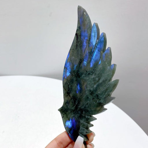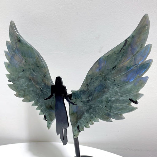 Labradorite Angel Wing Carving With Stand