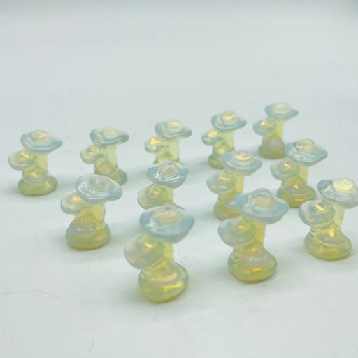 CRYSTALS WHOLESALE USAIn stockMaterial: Opalite (man made).Size: approximately 0.8in(2cm).MOQ: 10pcs.Color:as the picture.Quality: as the picture.Note: Those are mini mushroom t...
