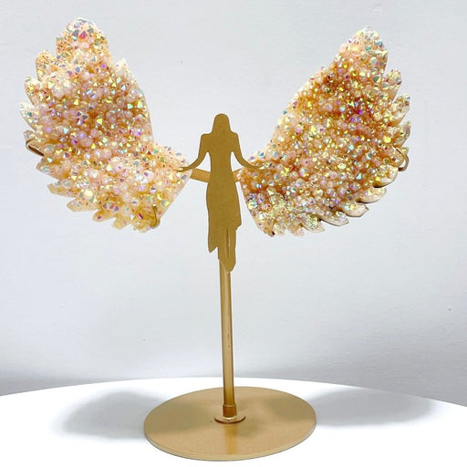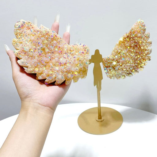Orange Aura Quartz Cluster Angel Wing Carving With Stand