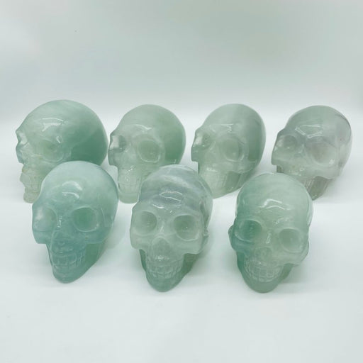 7 Pieces Light Color Fluorite Halloween Skull Carving