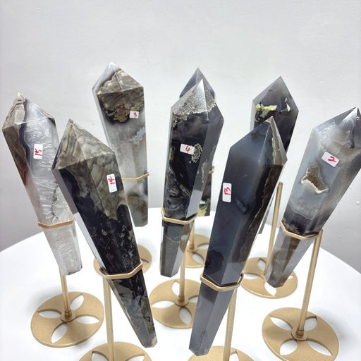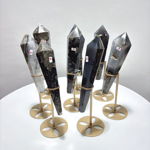 8 Pieces Volcano Agate Scepter Wand With Stand (UV Reactive)