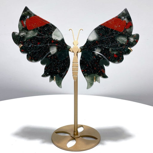 Beautiful Africa Blood Stone Butterfly Wing Carving With Stand