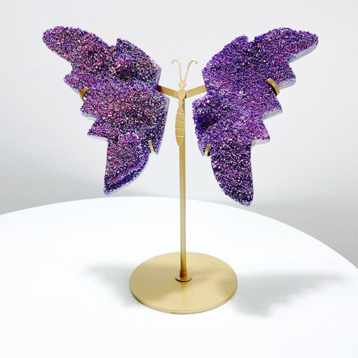 Beautiful Aura Quartz Cluster Butterfly Wing With Stand