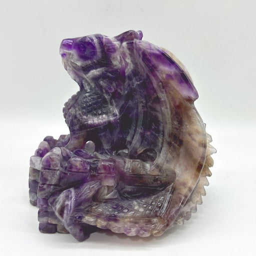 Beautiful Chevron Amethyst Dragon Castle Carving