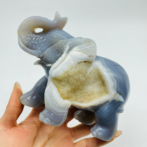 Beautiful Geode Agate Druzy Elephant Animal Carving