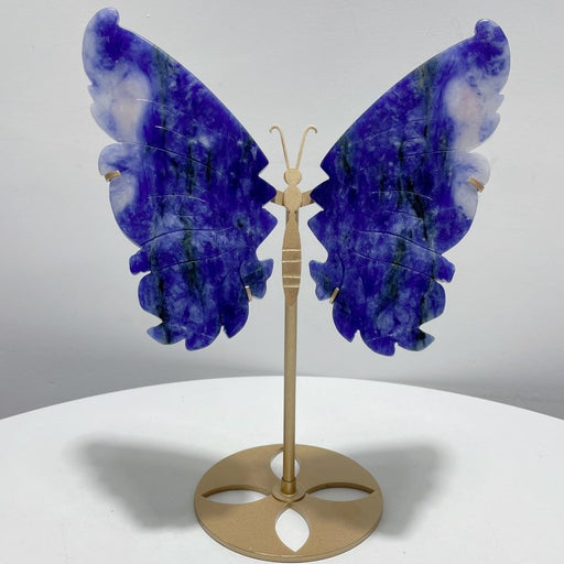 Blue Sodalite Butterfly Wing Carving With Stand