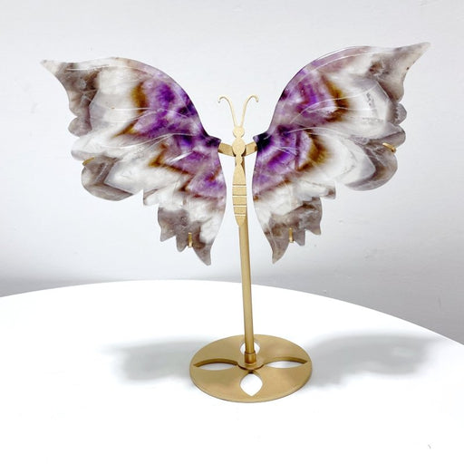 Chevron Amethyst Butterfly Wing Carving With Stand