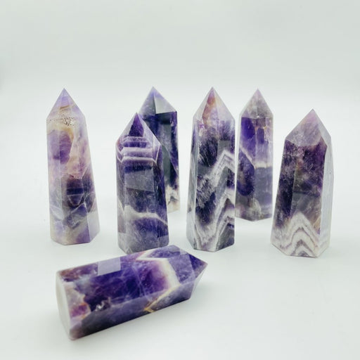 CRYSTALS WHOLESALE USAIn stockName Of Item chevron amethyst tower Material chevron amethyst Size/Weight 2-4in(5-10cm).About 8-12pcs per kilo. MOQ 1kilo Color as the p...