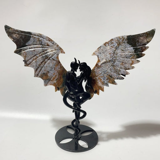 Original price $58.00 - Original price $58.00Original price$58.00$58.00 - $58.00Current price $58.00| /Colorful Moss Agate Demon and Angel Wing Carving With StandCRYSTALS WHOLESALE USAIn stockMaterial: Moss Agate.Size: approximately 11.6*9.8in (29.5*25cm).Total Weight(stone+stand): 0.54kg(1.19lbs).Color: as the picture.Quality: as the pi... View full detailsOriginal price $58.00 - Original price $58.00Original price$58.00$58.00 - $58.00Current price $58.00| /